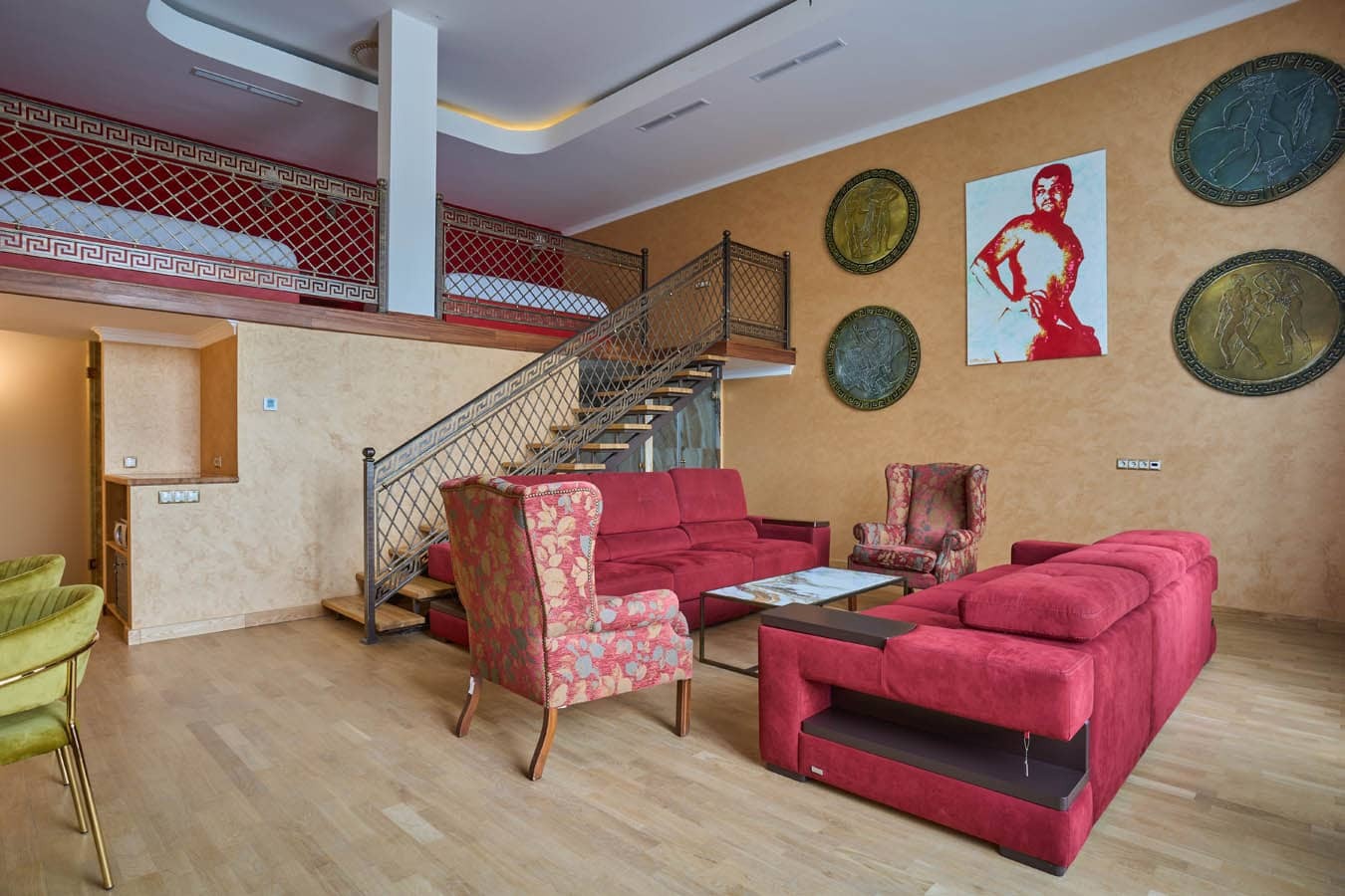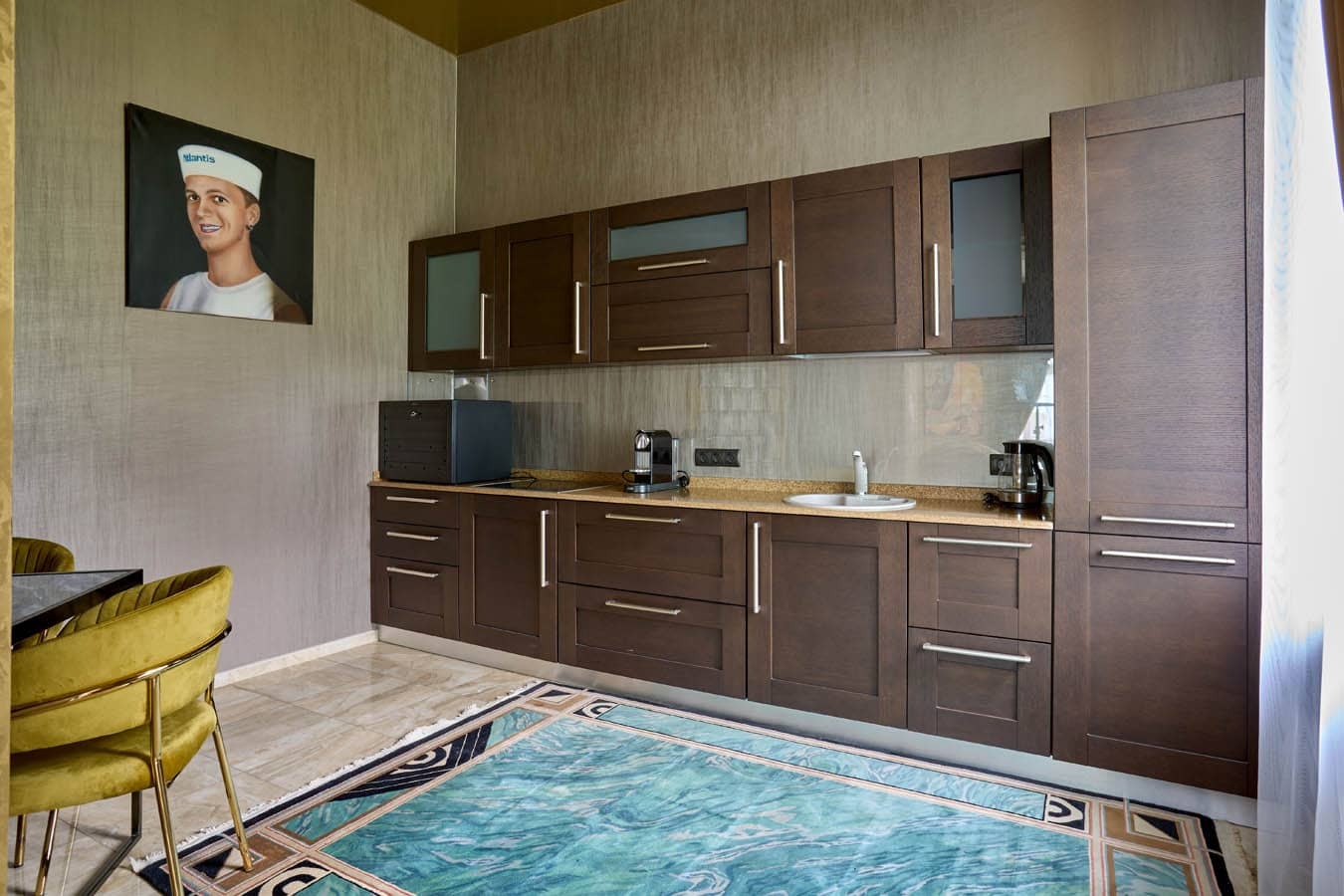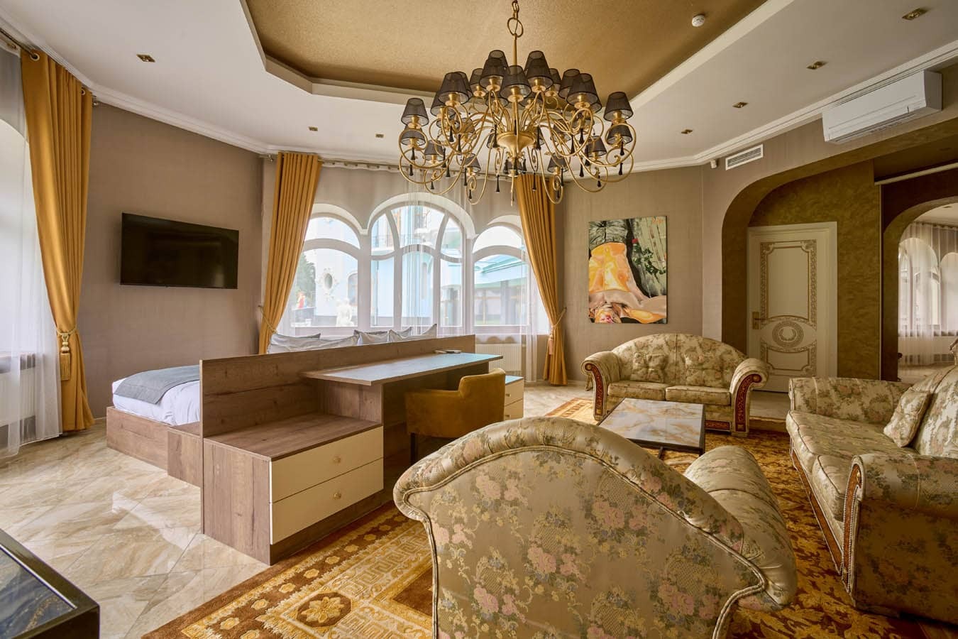 | Гранд Гранд 2-местный 1-комнатный сьют с кухней | 70 кв.м. | 2 чел. | Мебель (диван, зеркало, кресла, кровать двуспальная, прикроватные тумбочки, стол, столик журнальный,... | |