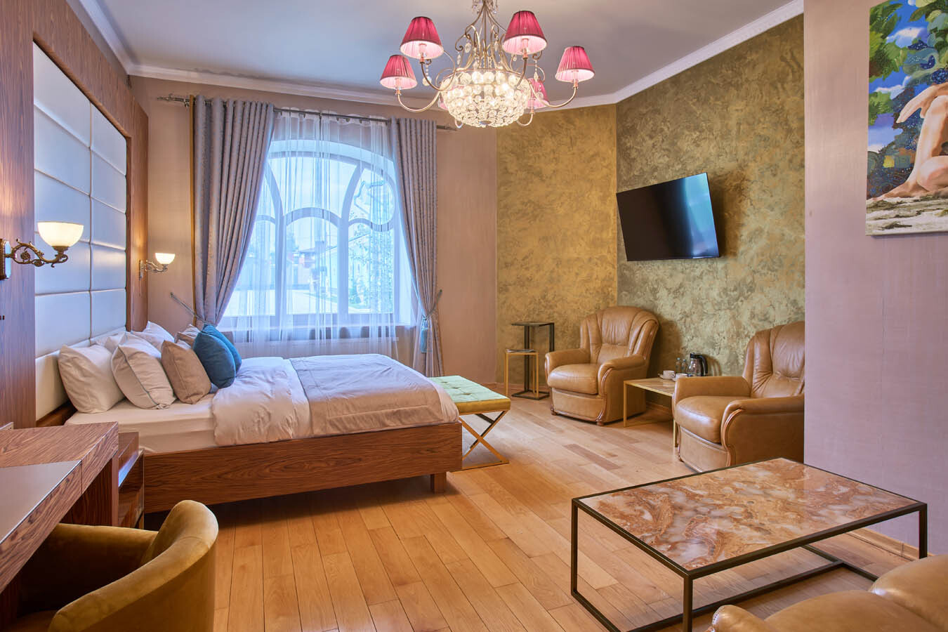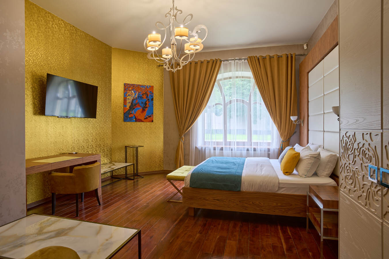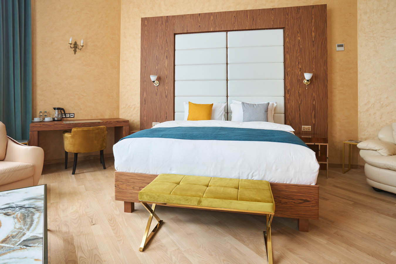 | Джуниор сюит Джуниор сьют 2-местный 1-комн. | 34 кв.м. | 2 чел. | Мебель (диван, зеркало, кровать двуспальная, прикроватные тумбочки, стол, стул, шкаф), Оборудование... | |