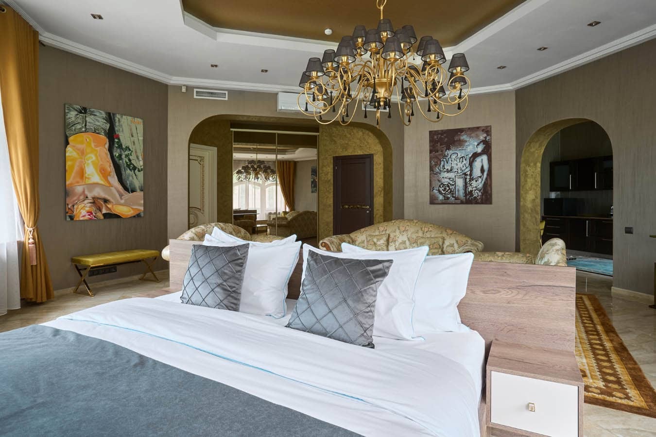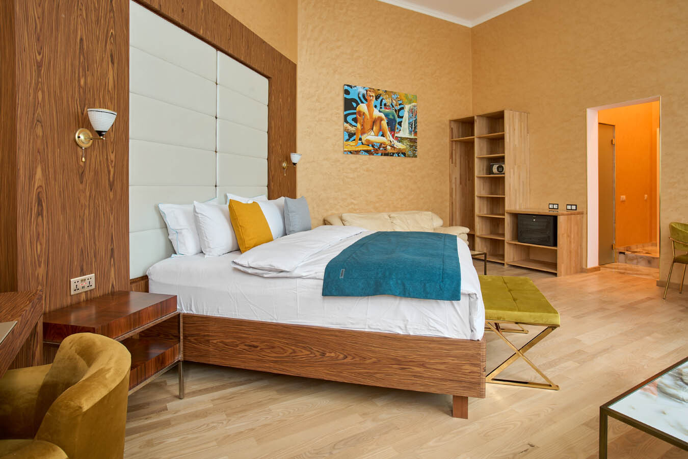 | Гранд Гранд 2-местный 1-комнатный сьют | 98 кв.м. | 2 чел. | Мебель (диван, зеркало, кровать двуспальная, прикроватные тумбочки, стол, столик журнальный, шкаф),... | |