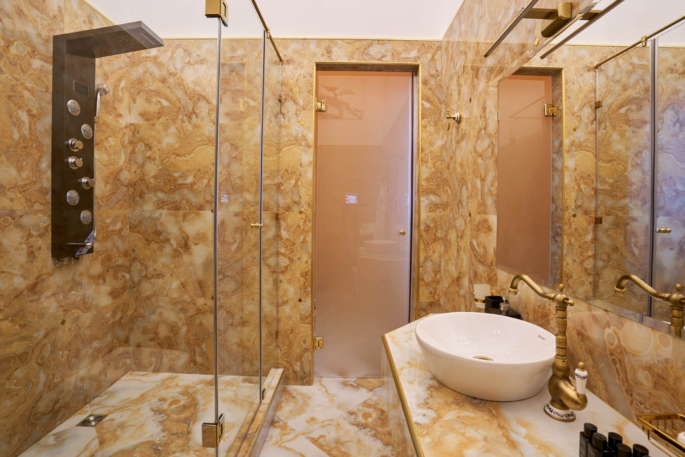 - Санузел: с душем, тапочки, туалетные принадлежности, фен, халат